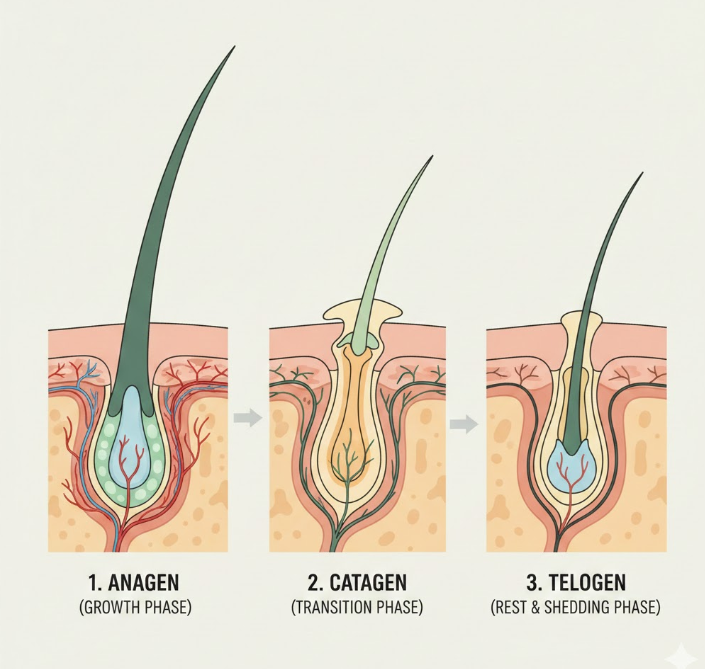 • Stress – Can trigger telogen effluvium (temporary hair shedding)